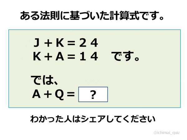 Q=12、A=1なので、Q+A=12+1=13 になります。