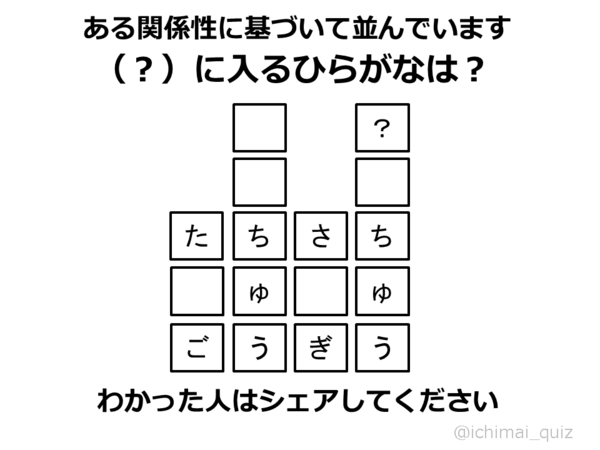 【 #1枚クイズ038 】(?)にあてはまるひらがなは何でしょう?