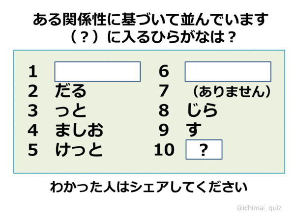 【 #1枚クイズ042 】(?)に入るひらがなは何でしょう?
