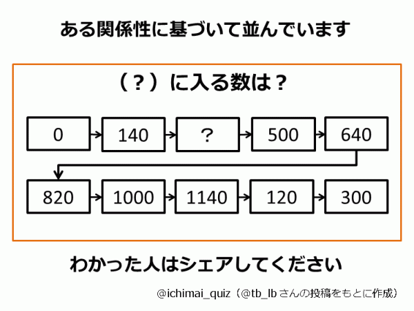 (?)に入る数はなんでしょうか?答えがわかった人は、答えは書かずにヒントのコメントをつけてシェアですよ。これもある意味100にちなんだ問題です。